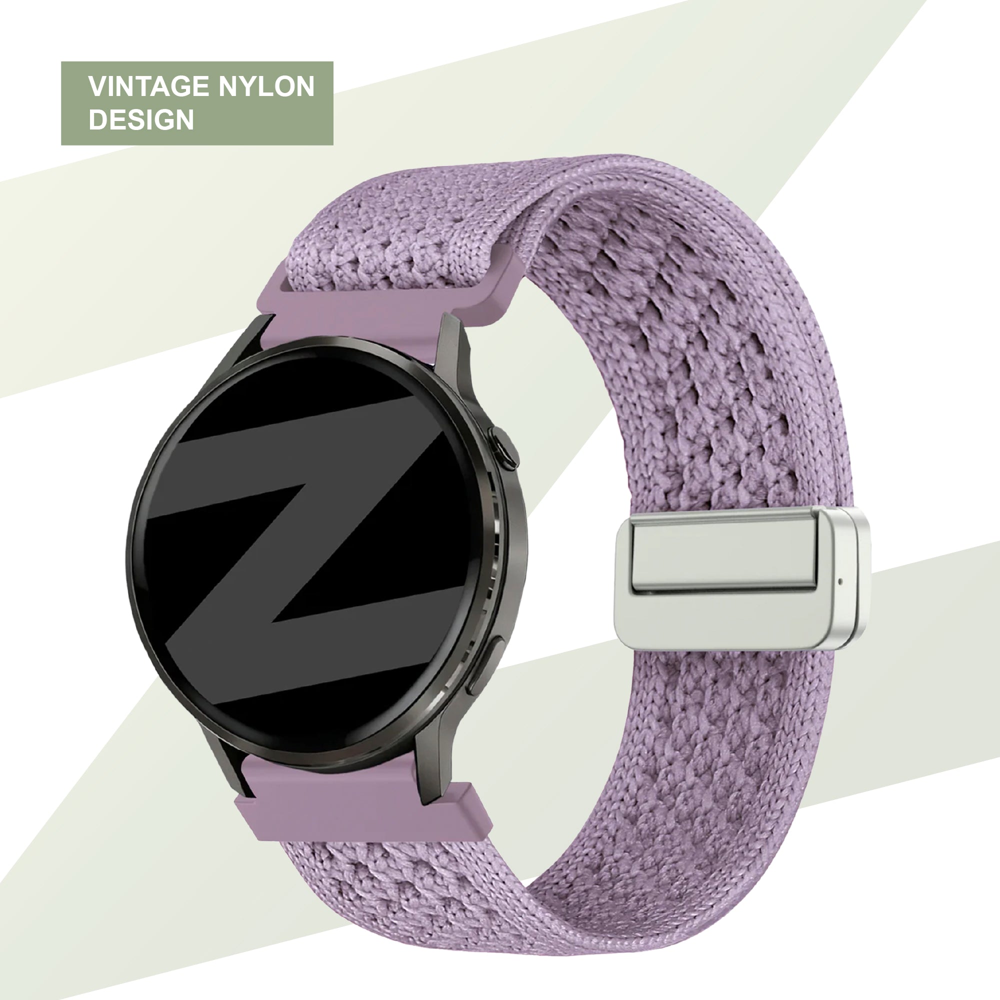 Elevate your smartwatch with this stylish vintage nylon strap in light purple, perfect for everyday wear or special occasions.