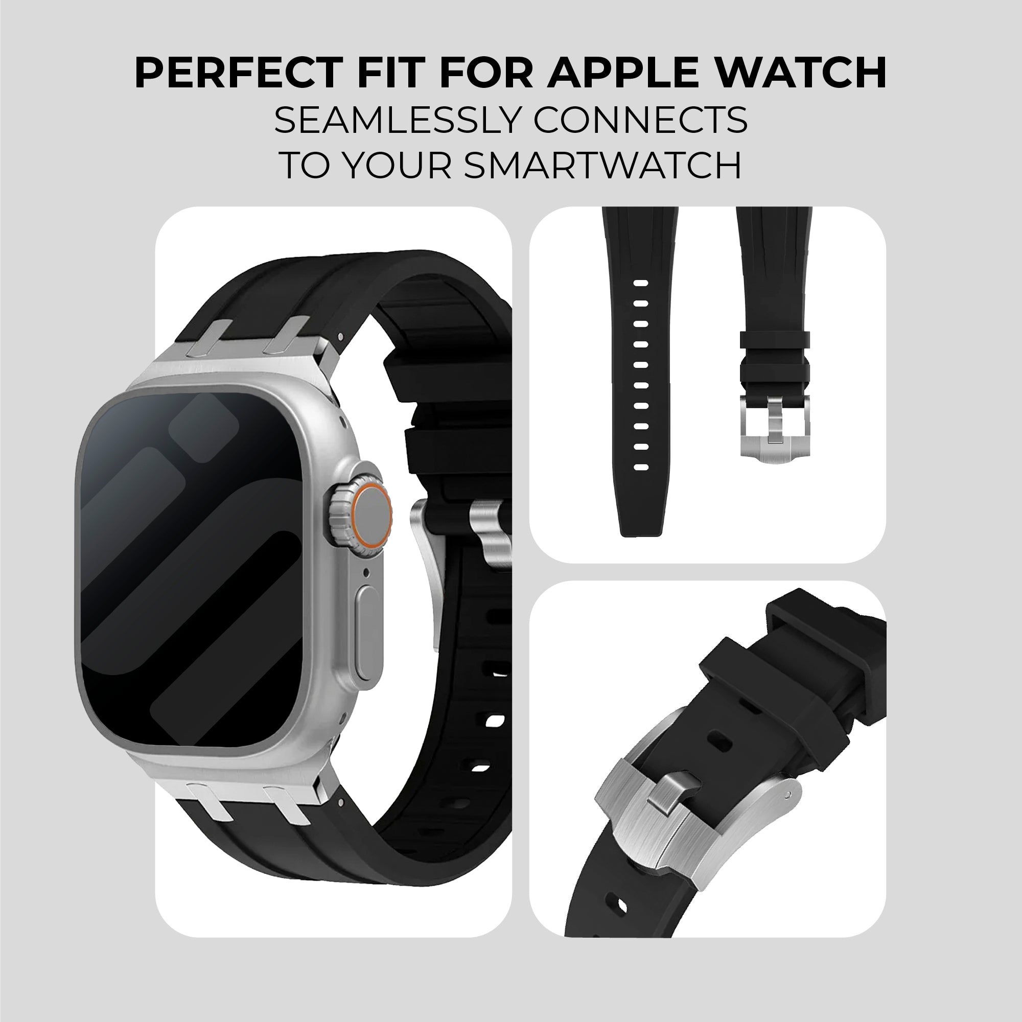 Apple Watch Luxury Liquid Silicone Strap (Black/Silver)