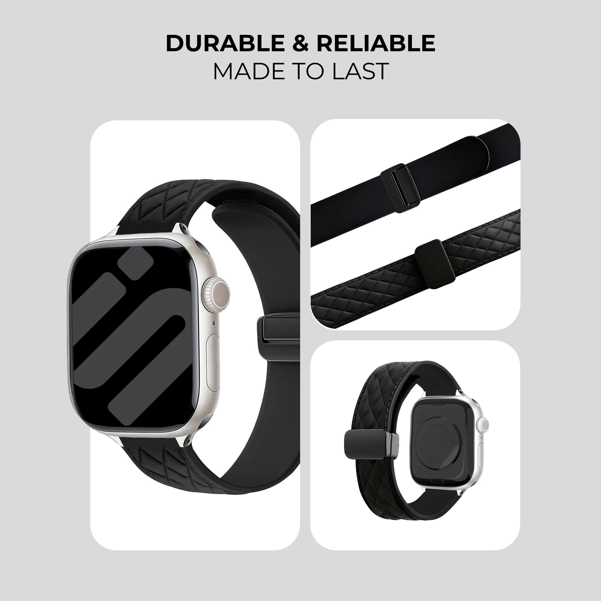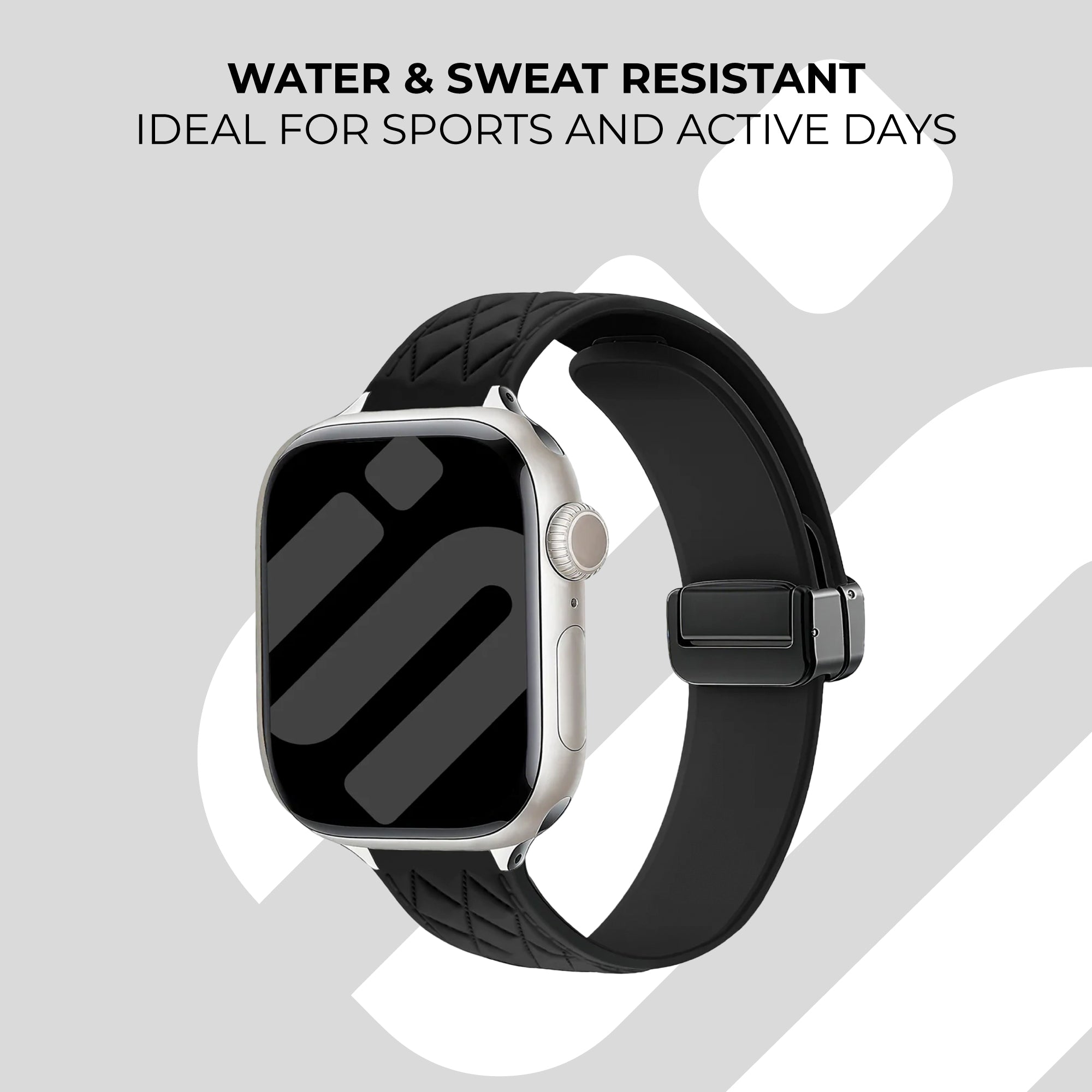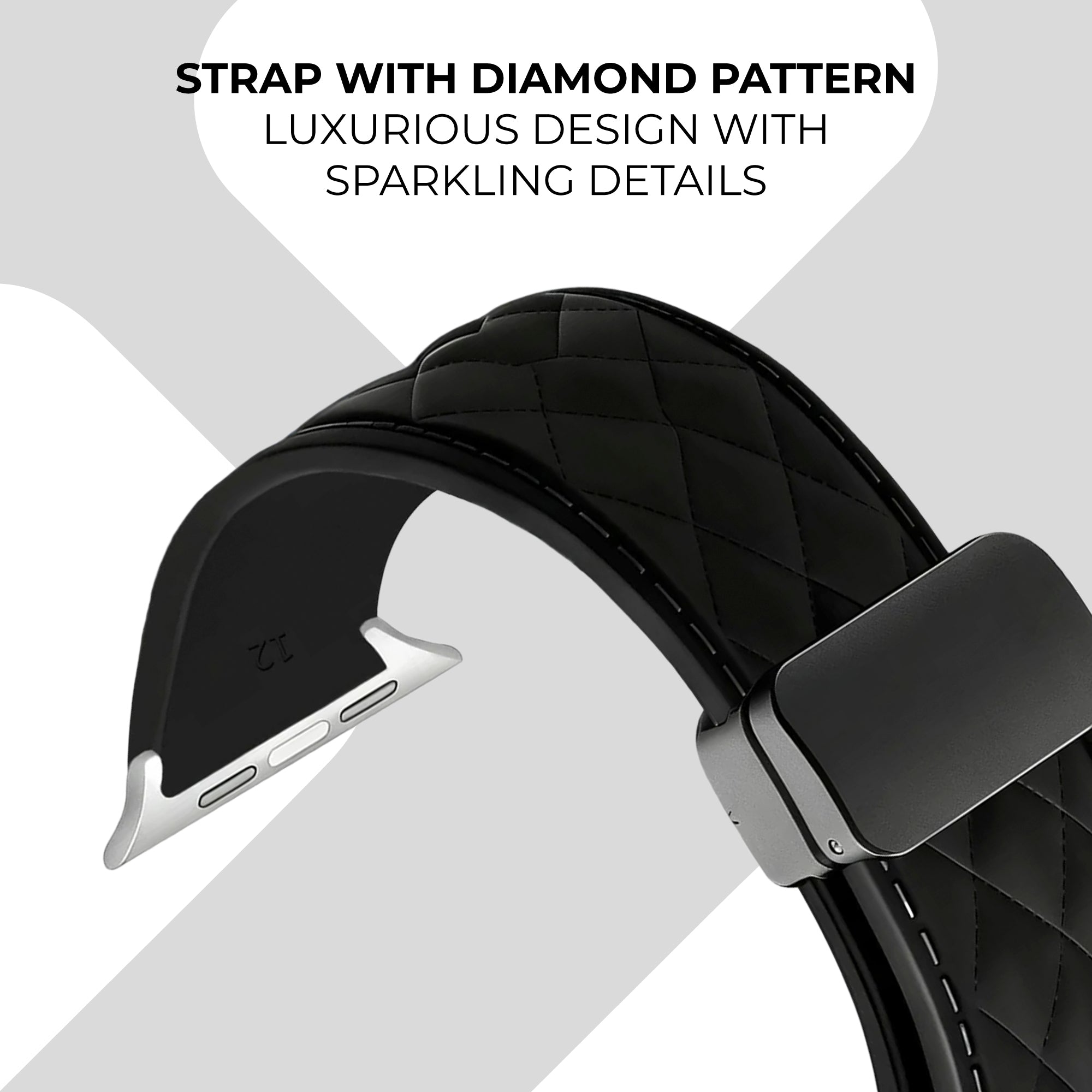 Apple Watch D-Buckle Silicone Diamond Strap (Black)