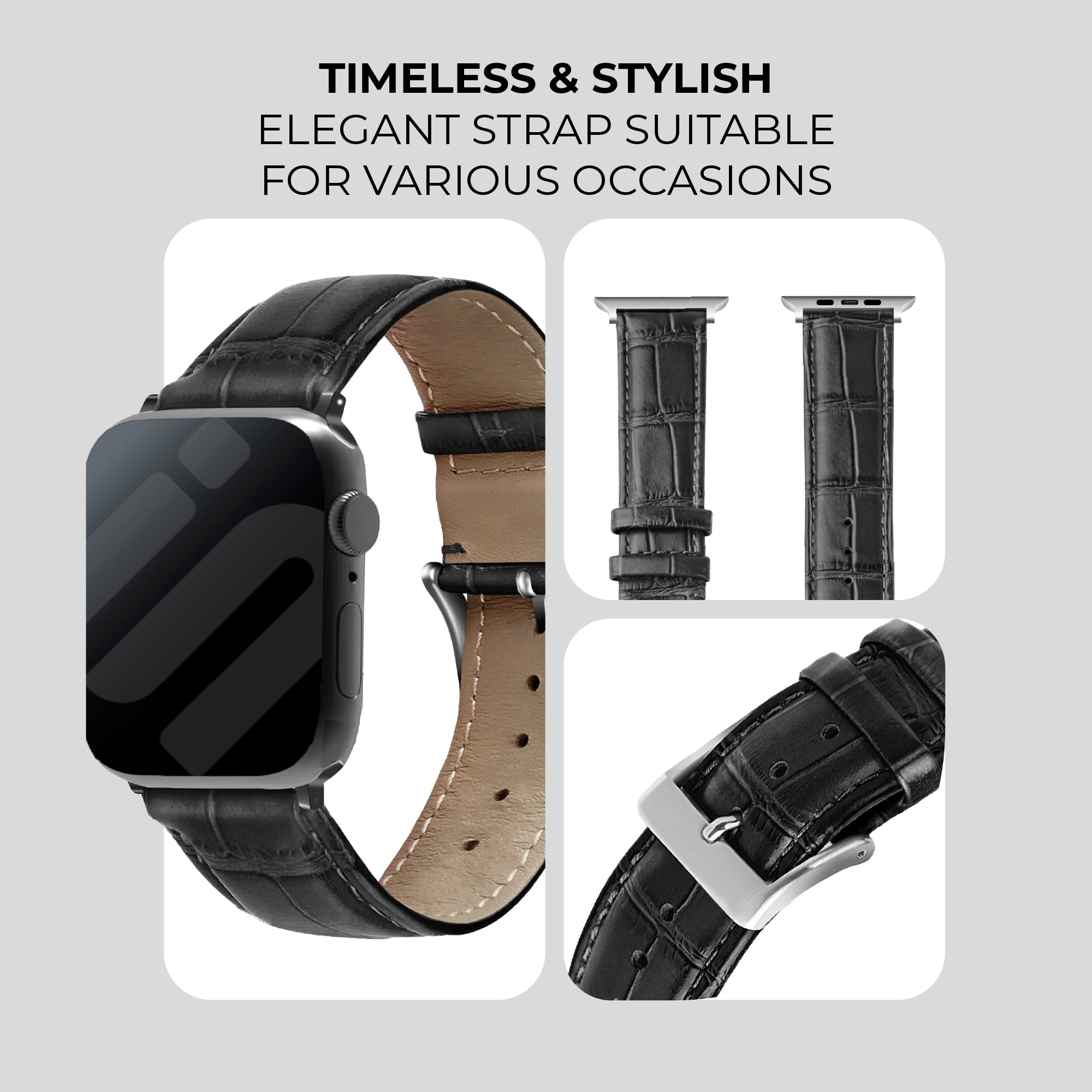 Apple Watch Leather Strap Crocodile Grain (Black)