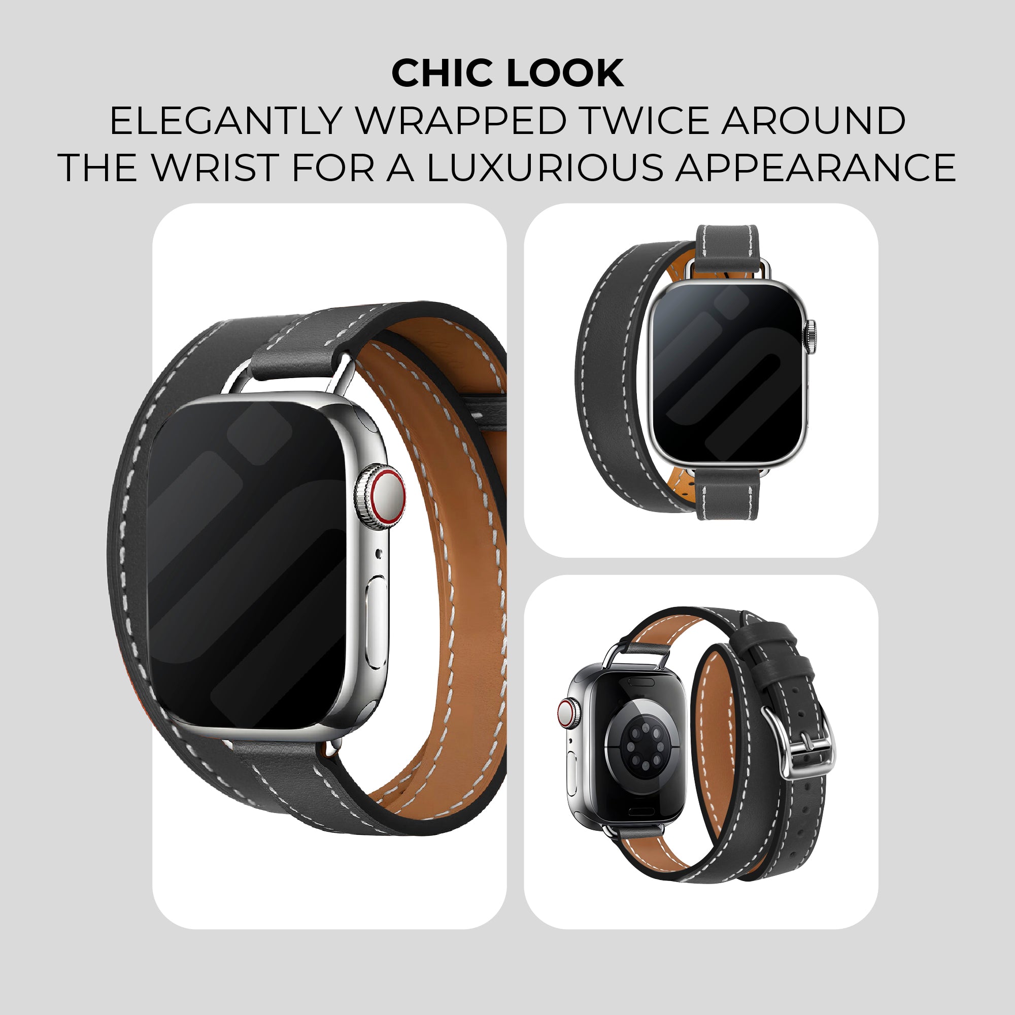 Apple Watch Leather Double Tour Strap (Black)
