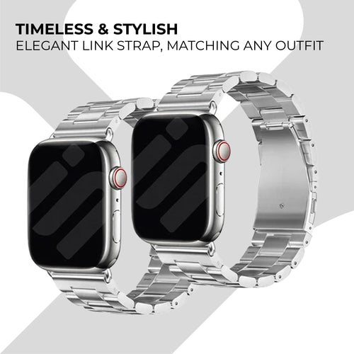 This steel strap for the Apple Watch is a stylish wristband made from high quality stainless steel, featuring a sturdy folding clasp closure. The strap will give your watch a look and feel associated with classic wristwatches and luxury. The individual links are made to a high standard which ensures supple movement and high comfort. The steel strap is available in multiple colours.