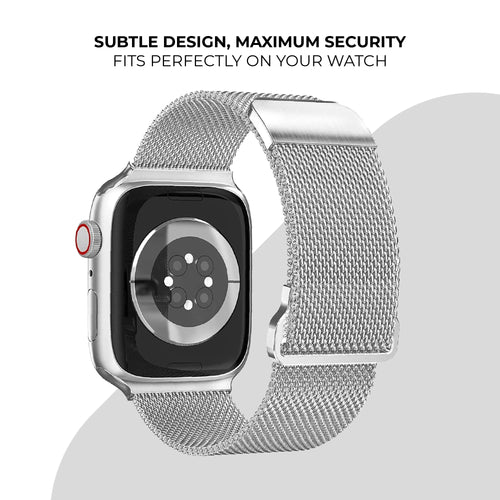 A Silver Milanese strap for the Apple Watch
