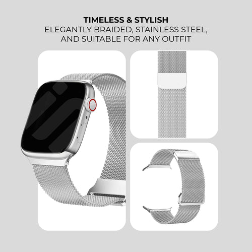 These Apple Watch Milanese straps are stainless steel bracelets with a beautiful Italian design. This gives your Apple Watch a beautiful, stylish new look. The woven style feels light on the wrist and makes it comfortable to wear. With the magnetic closure, this watch band will always stay in place. Choose from several stylish colours.