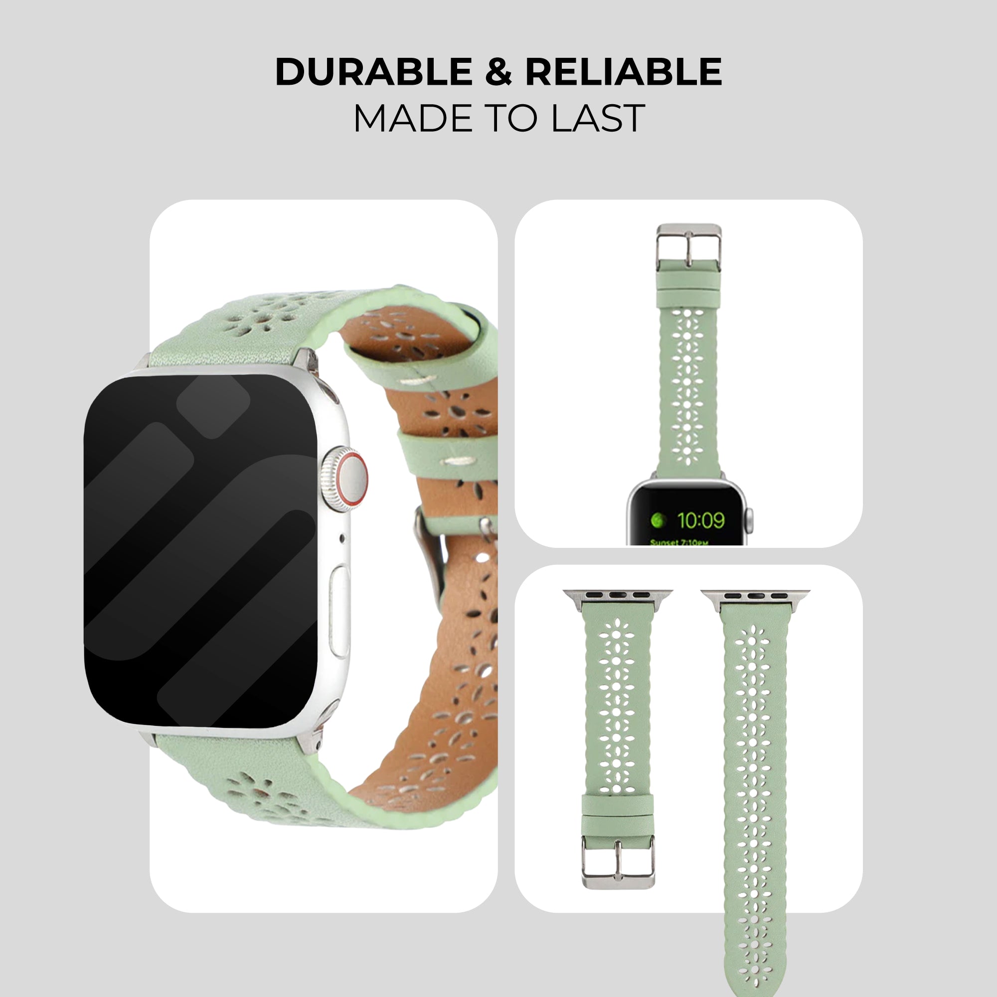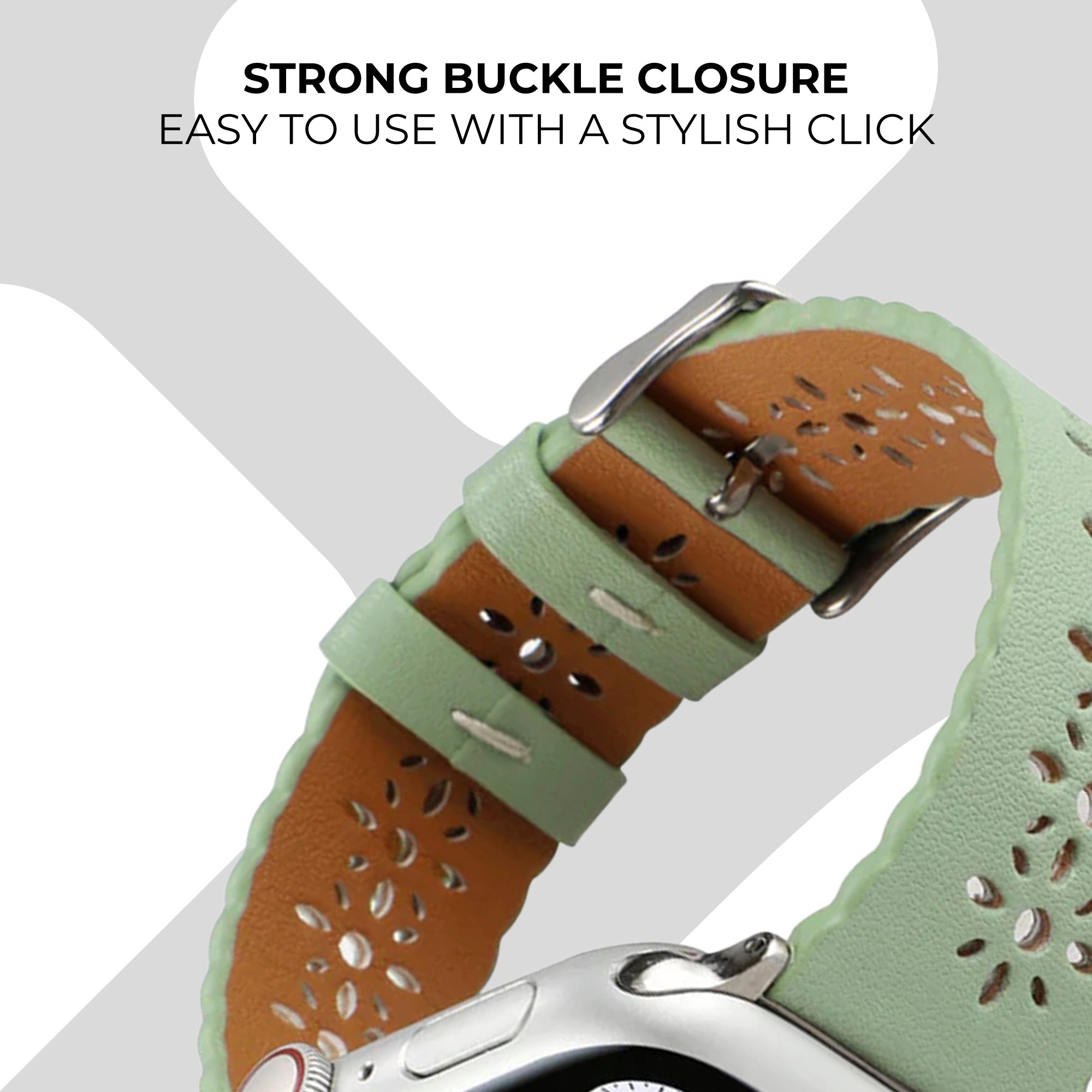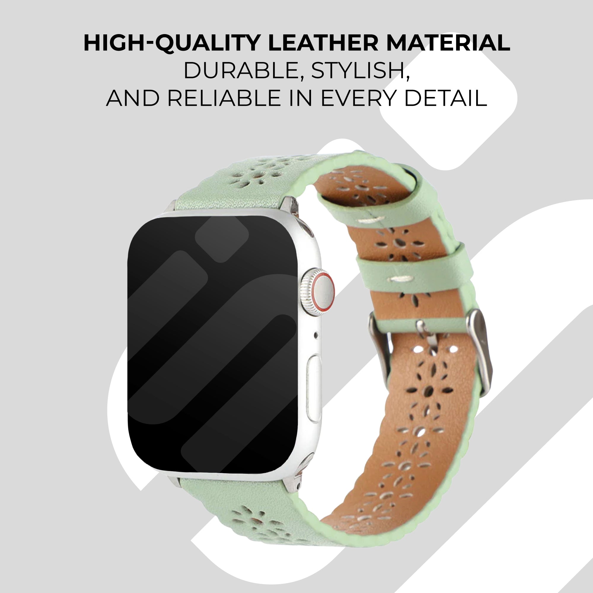 Apple Watch Patterned Leather Strap (Light Green)