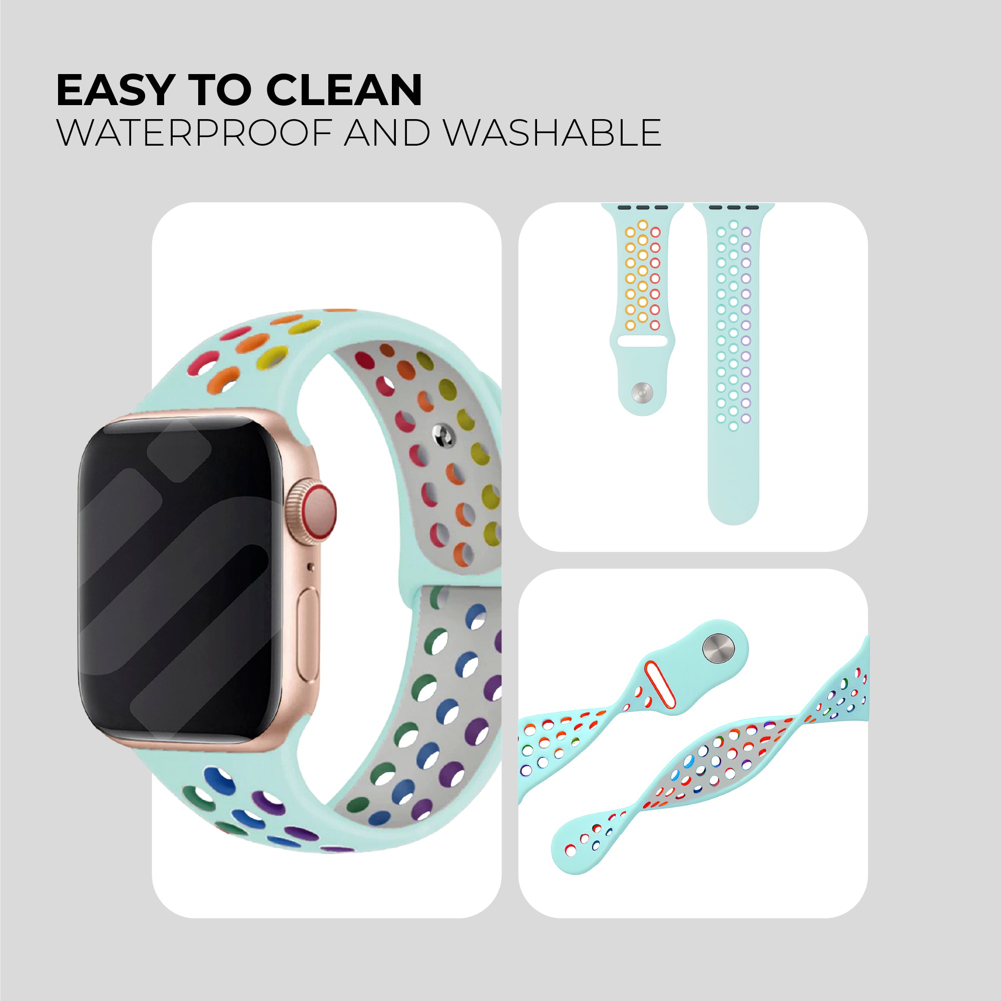 Apple Watch Sport Strap (Light Blue/Rainbow)