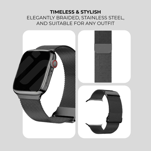 These Apple Watch Milanese straps are stainless steel bracelets with a beautiful Italian design. This gives your Apple Watch a beautiful, stylish new look. The woven style feels light on the wrist and makes it comfortable to wear. With the magnetic closure, this watch band will always stay in place. Choose from several stylish colours.