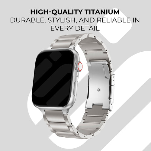 A titanium strap for your Apple Watch is the ultimate watch strap to go for. This premium strap is made from titanium, a metal that has an appearance simular to our stainless steel strap but with a few major advantages. Titanium is much lighter and also more durable than stainless steel. This means you've got a comfortable watch strap that will last you a lifetime!