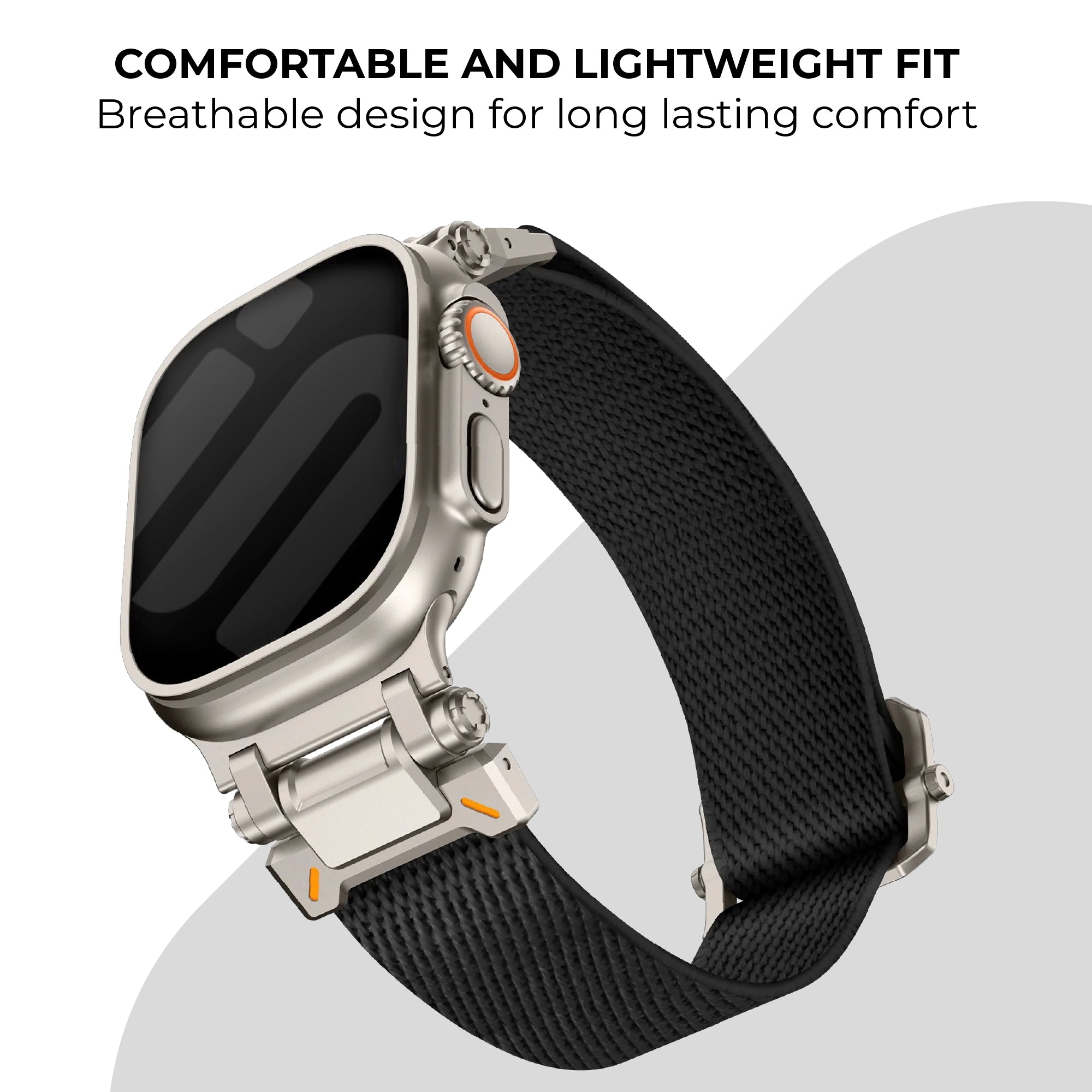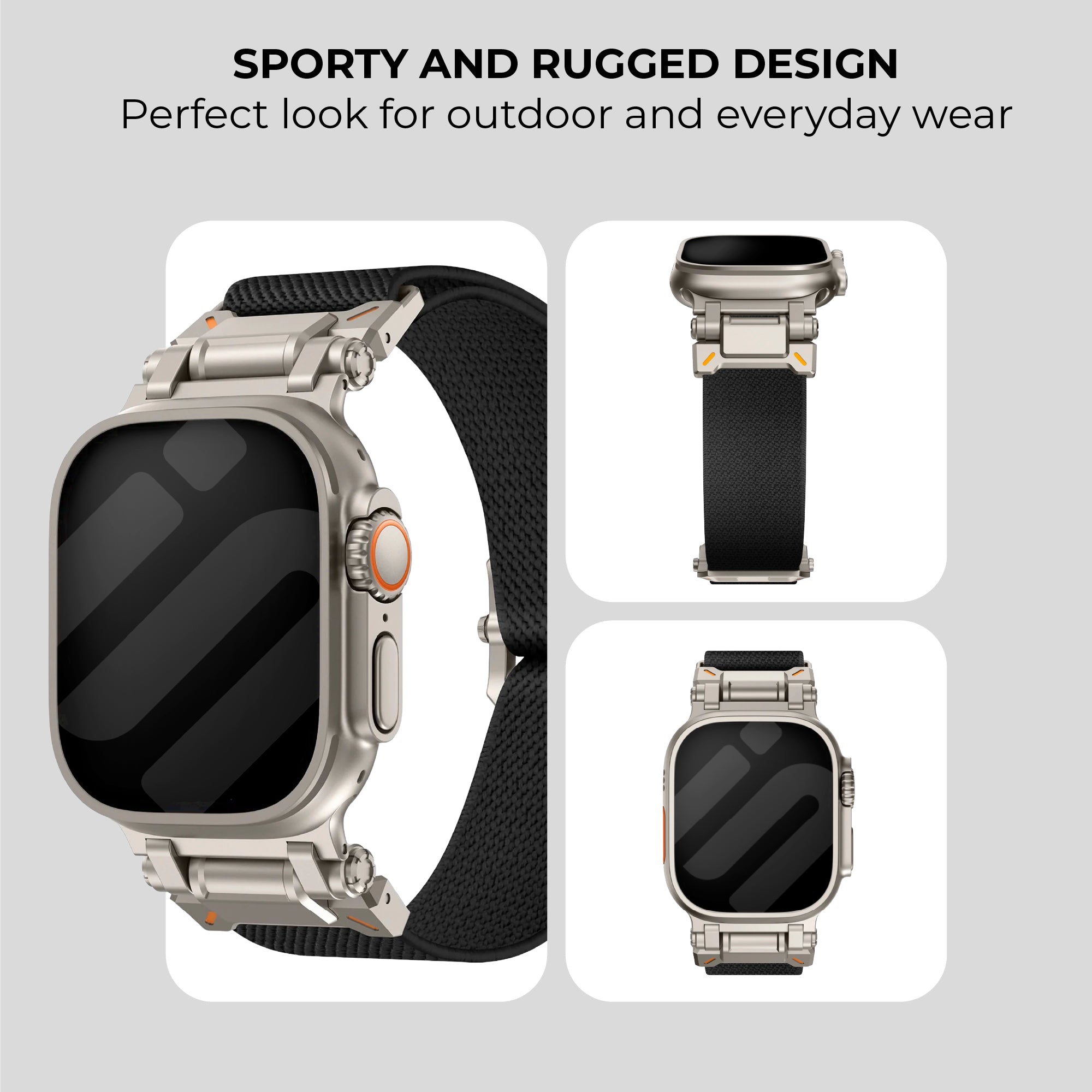 This strap combines durable polyester with a modern titanium finish, perfect for your Apple Watch Ultra.