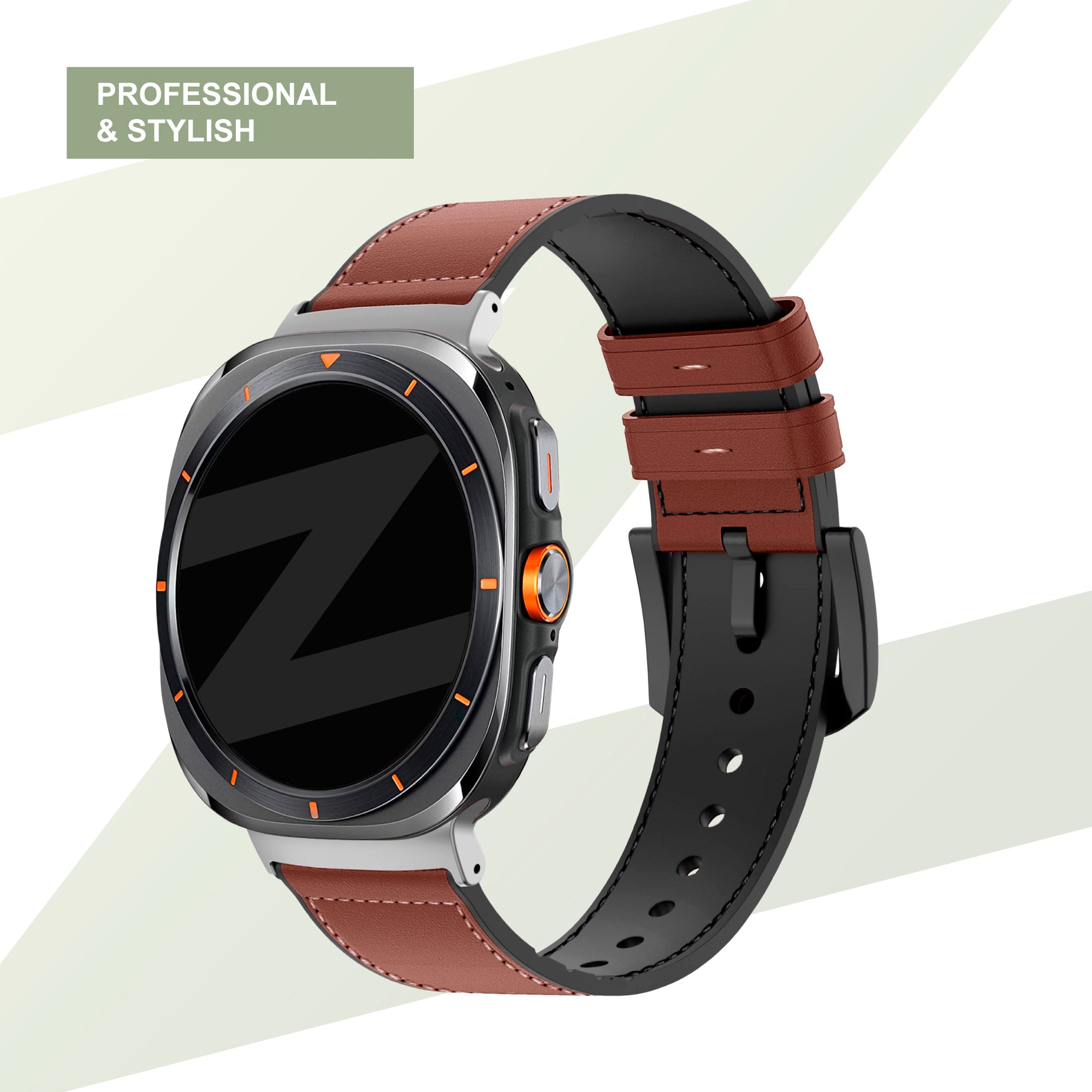 Bandz Samsung Galaxy Watch Ultra Leather Hybrid Strap with Buckle (Brown)