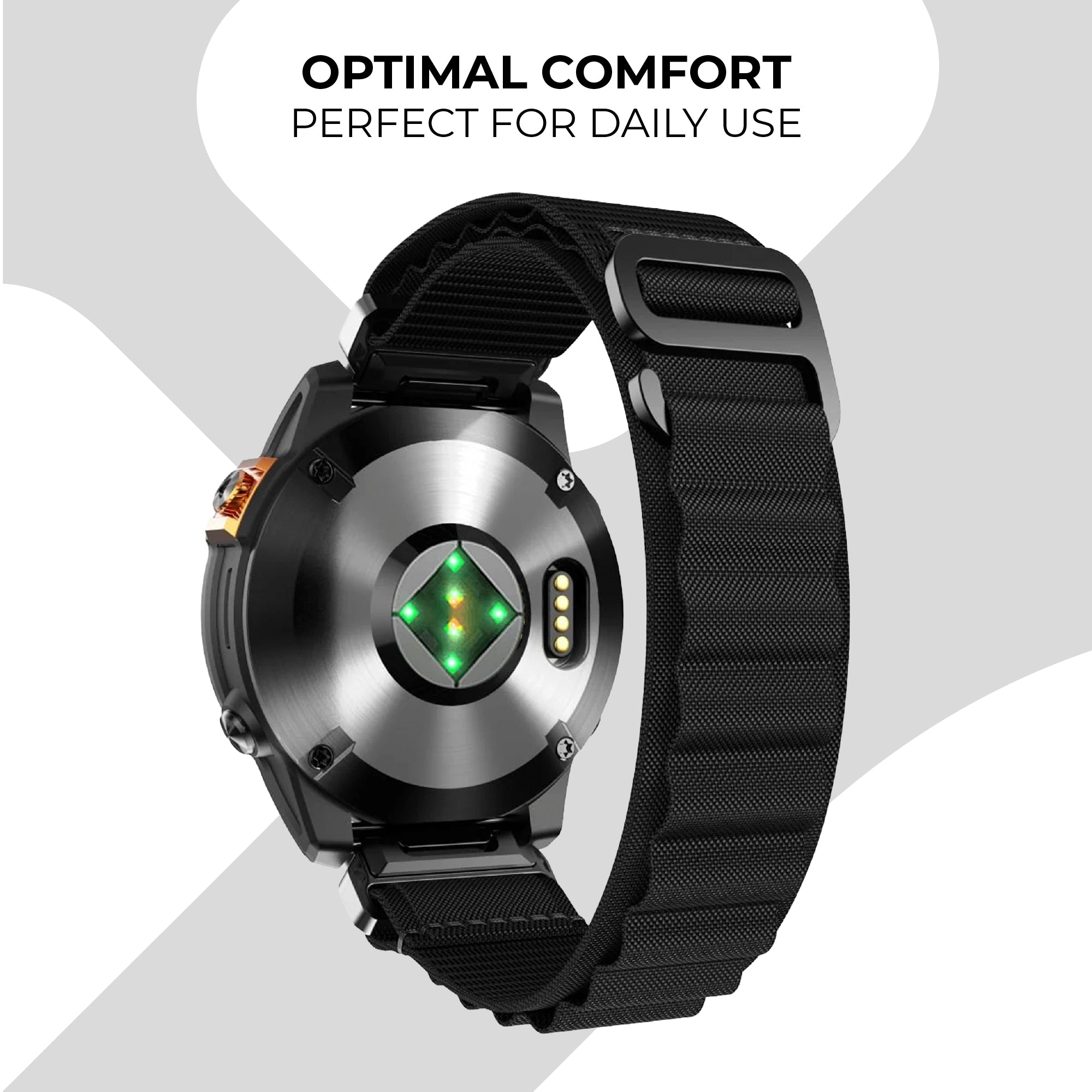 Nylon smart watch straps are often the best choice for every day wear. They are the most comfortable to wear for a long period of time and can be used for sports as well.