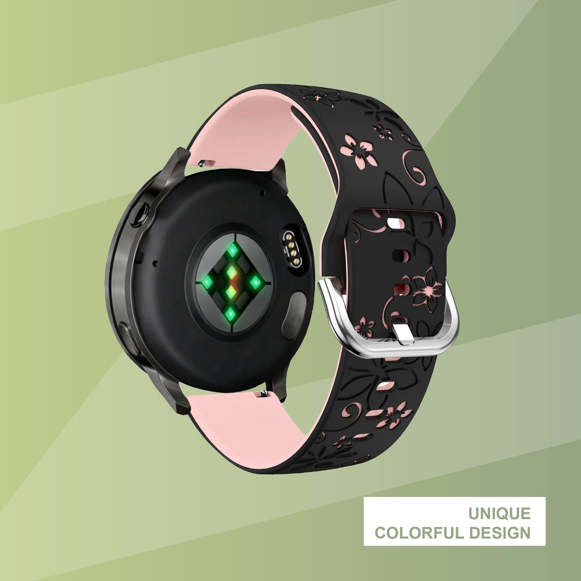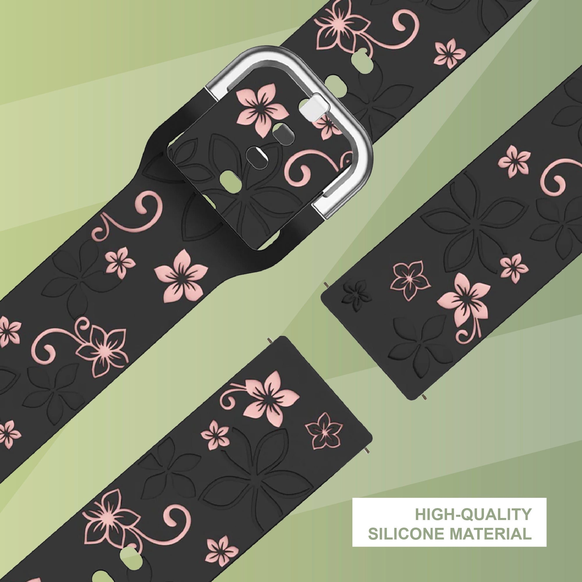 Bandz Garmin Venu 2 Plus Silicone Strap 'Flowers' (Black/Light Pink)